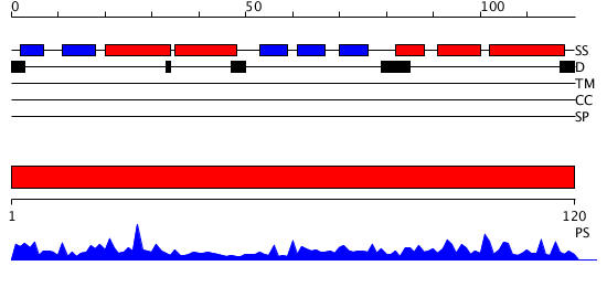 1 View Details [1..120] Pfam 71.309804 No description for PF06062.2 was found. No confident structure predictions are available.