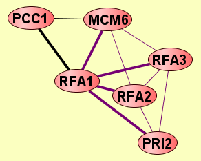 | View GO Analysis | 2 proteins | Classifier used Gene Ontology annotations. [FDR: 0.054] [SVM Score: 0.611824900679] | PCC1 RFA1 |