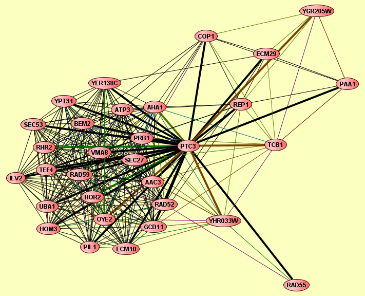 | View GO Analysis | 23 proteins | This molecular complex record represents a population of complexes co-purified by immunoprecipitation of FLAG-tagged Rad59. The topolgies of protein complexes in this experiment are unknown. | AAC3 AHA1 ATP3 BEM2 ECM10 GCD11 HOM3 HOR2 ILV2 OYE2 PIL1 PRB1 PTC3 RAD52 RAD59 RHR2 SEC27 SEC53 TEF4 UBA1 VMA8 YER138C YPT31 |