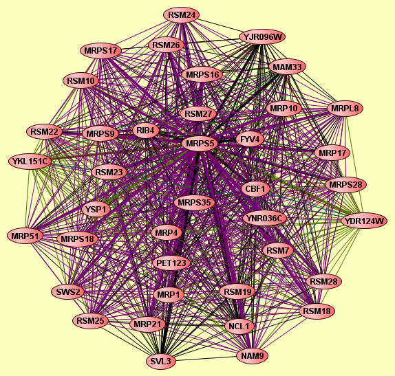 | View GO Analysis | 39 proteins | From the published set of core protein complex predictions. | CBF1 FYV4 MAM33 MRP1 MRP10 MRP17 MRP21 MRP4 MRP51 MRPL8 MRPS12 MRPS16 MRPS17 MRPS18 MRPS28 MRPS35 MRPS5 MRPS9 NAM9 NCL1 PET123 RIB4 RSM10 RSM18 RSM19 RSM22 RSM23 RSM24 RSM25 RSM26 RSM27 RSM28 RSM7 SVL3 SWS2 YDR124W YJR096W YKL151C YSP1 |
