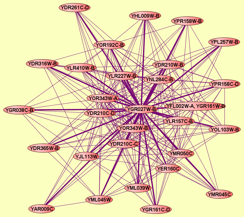 | Complexes containing YGR027W-B: | 28 |