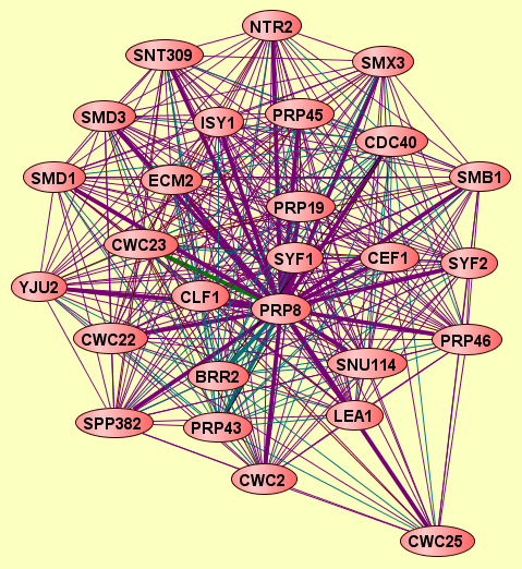 | View GO Analysis | 20 proteins | Complex description from publication: 13. YLR424W and YKR022C mRNA splicing | BRR2 CDC40 CEF1 CLF1 CWC2 CWC23 ECM2 NTR2 PRP19 PRP43 PRP45 PRP46 PRP8 SMB1 SMD3 SMX3 SNT309 SNU114 SPP382 SYF1 |