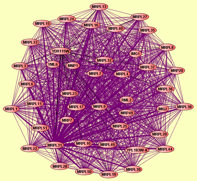 | View GO Analysis | 44 proteins | MIPS hand-curated complex set. MIPS complex ID: 500.60.10 | IMG1 IMG2 MNP1 MRP20 MRP49 MRP7 MRPL1 MRPL10 MRPL11 MRPL13 MRPL15 MRPL16 MRPL17 MRPL19 MRPL20 MRPL22 MRPL23 MRPL24 MRPL25 MRPL27 MRPL28 MRPL3 MRPL31 MRPL32 MRPL33 MRPL35 MRPL36 MRPL37 MRPL38 MRPL39 MRPL4 MRPL40 MRPL44 MRPL49 MRPL50 MRPL51 MRPL6 MRPL7 MRPL8 MRPL9 RML2 RTC6 YDR115W YML6 |