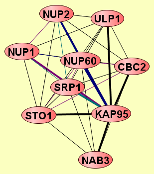 | View GO Analysis | 3 proteins | Complex predicted from the combined set of Gavin (2002), Gavin (2006), Ho (2002) and Krogan (2006); at p-value cutoff of 1E-7 | KAP95 SRP1 ULP1 |