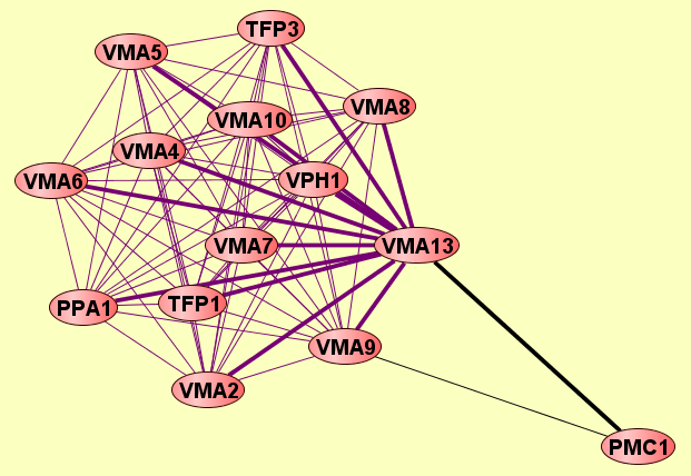 | View GO Analysis | 2 proteins | Classfier did not use Gene Ontology annotations. [FDR: 0.021] [SVM Score: 1.12666675538] | VMA13 VPH1 |