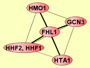 | View GO Analysis | 5 proteins | This molecular complex record represents a population of complexes co-purified by immunoprecipitation of FLAG-tagged Fhl1. The topolgies of protein complexes in this experiment are unknown. | FHL1 GCN3 HHF1, HHF2 HMO1 HTA1 |