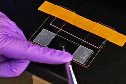 A 30 ul aliquot of the SDC agarose is pipetted into the center of the microscope slide.