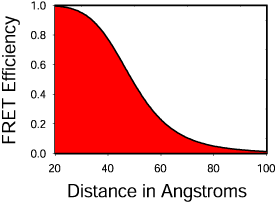 In practice we have found that the fluorophore to fluorophore distance must be less than 70 angstroms to be detected by our methods.