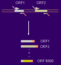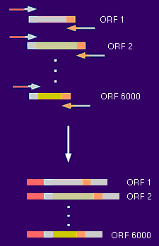 For each of the ~6000 yeast ORFs a specific primer pair was synthesized (Research Genetics, Alabama) and the ORF amplified from genomic DNA.